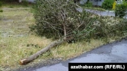 “Tüweleý 5 minut töweregi dowam etdi. Şol aralykda güýçli ýel köçäniň ugrundaky käbir wagtlaýyn dükanlary we agaçlary ýumurdy. Ýerli wagt bilen sagat 16:00 töweregi ýagyş hem diňdi” diýip, howpsuzlyk ýagdaýlary sebäpli anonim şertde maglumat beren aşgabatly habarçy 15-nji maýda gürrüň berdi.