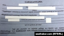 Bu “Gadagannama” “Aşgabatgaz” dolandyryş edarasy tarapyndan çykarylyp, şu günler bu edaranyň işgärleri öýme-öý aýlanýarlar we ýaşaýjylardan bu resminama gol goýmagy talap edýärler.
